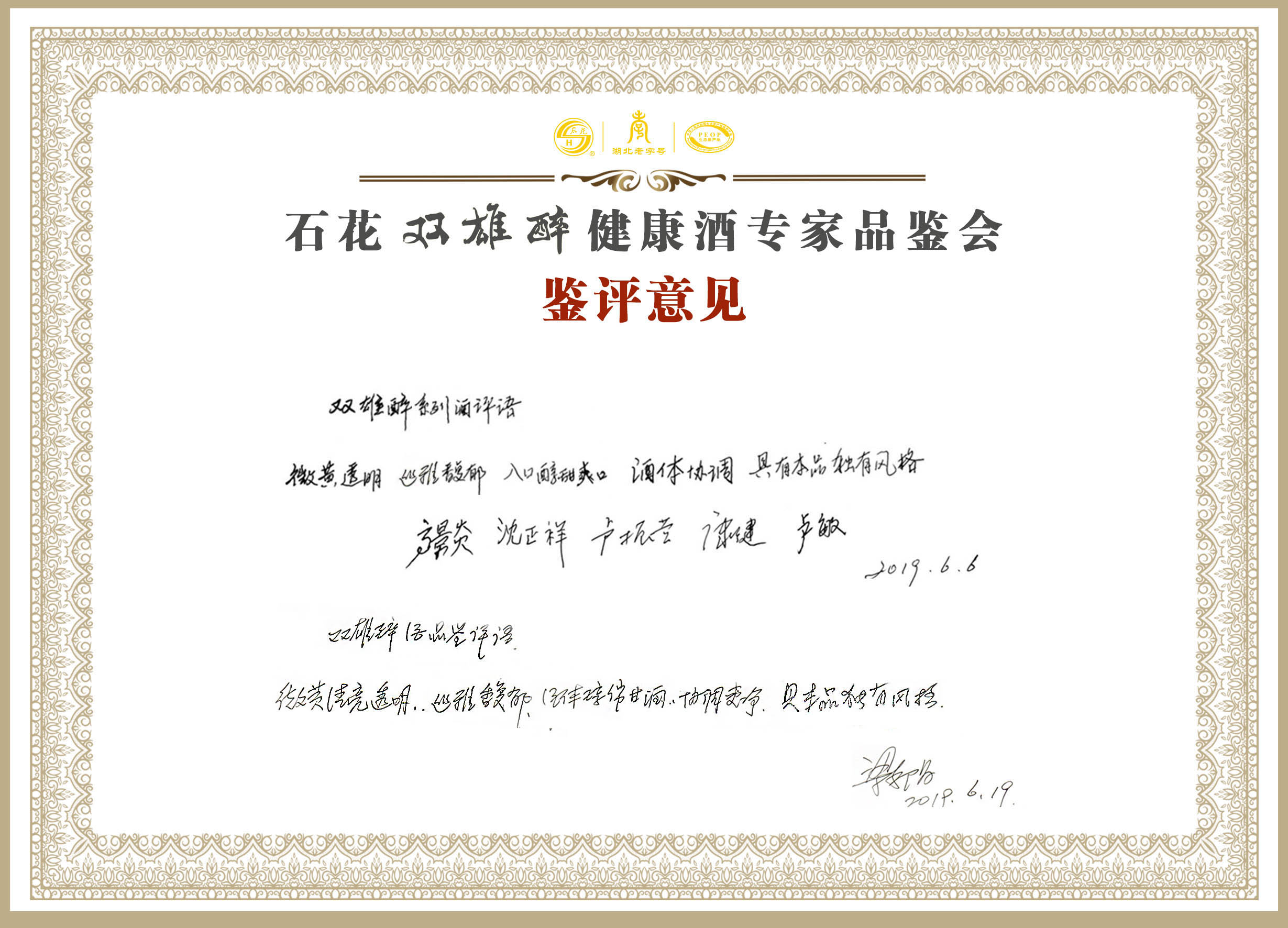 在繼承九十年代研發(fā)雙雄醉品質(zhì)基礎(chǔ)上,為順應(yīng)健康飲酒趨勢,我們匯集了酒廠所有技術(shù)力量,由石花酒業(yè)釀酒大師龔新敏精心釀造,釀酒大師劉忠軍精心調(diào)制,評酒大師盧敏反復(fù)品評,數(shù)年磨一劍,終于打造出了品質(zhì)更卓越、口感更完美的雙雄醉健康酒產(chǎn)品。