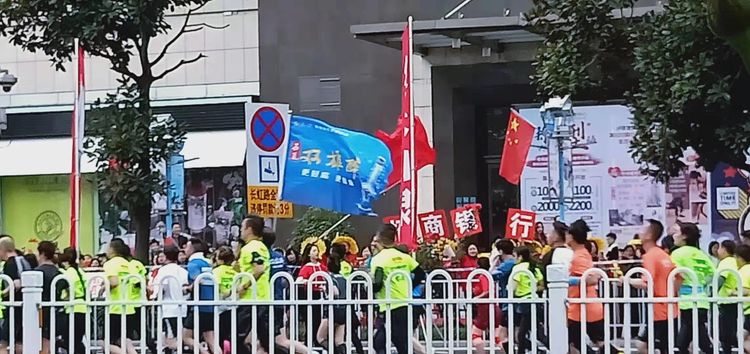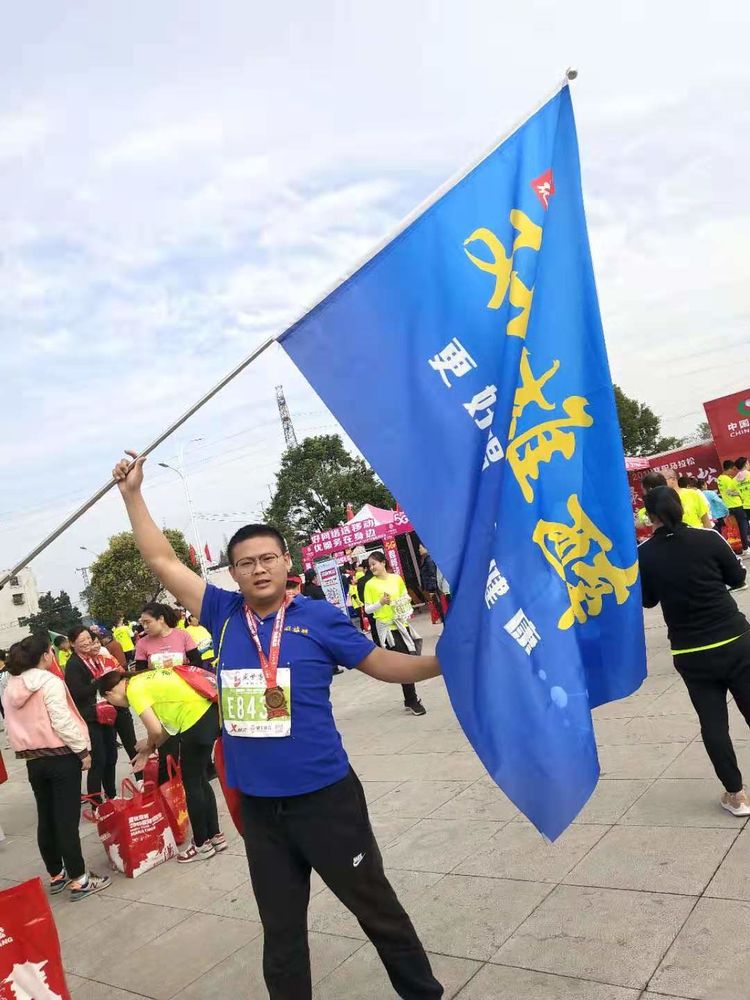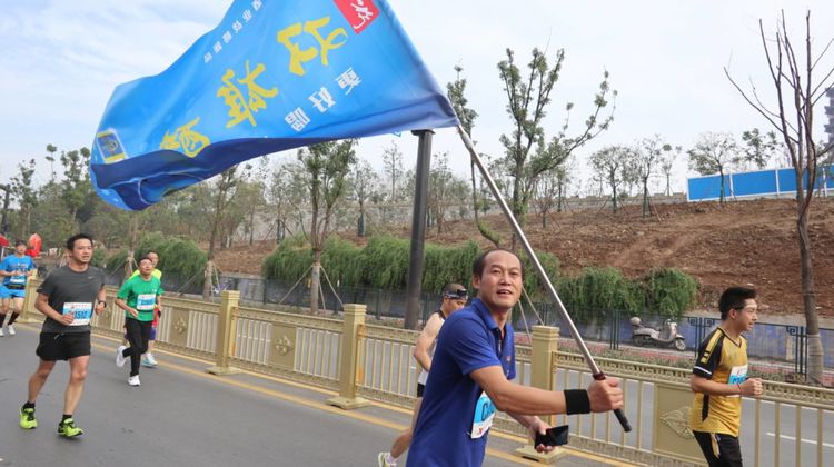 健康跑的隊友們,不要忘啦,我們雙雄醉半馬跑團還在路上哦!18公里處,這旗幟,多拉風!