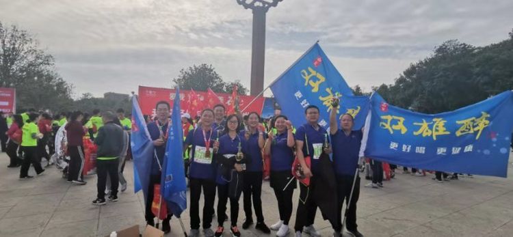這么勁爆的場面一定有雙雄醉的參與,今天,由雙雄醉酒業(yè)員工和忠實消費者組成的雙雄醉跑團也隨大部隊一展英姿!