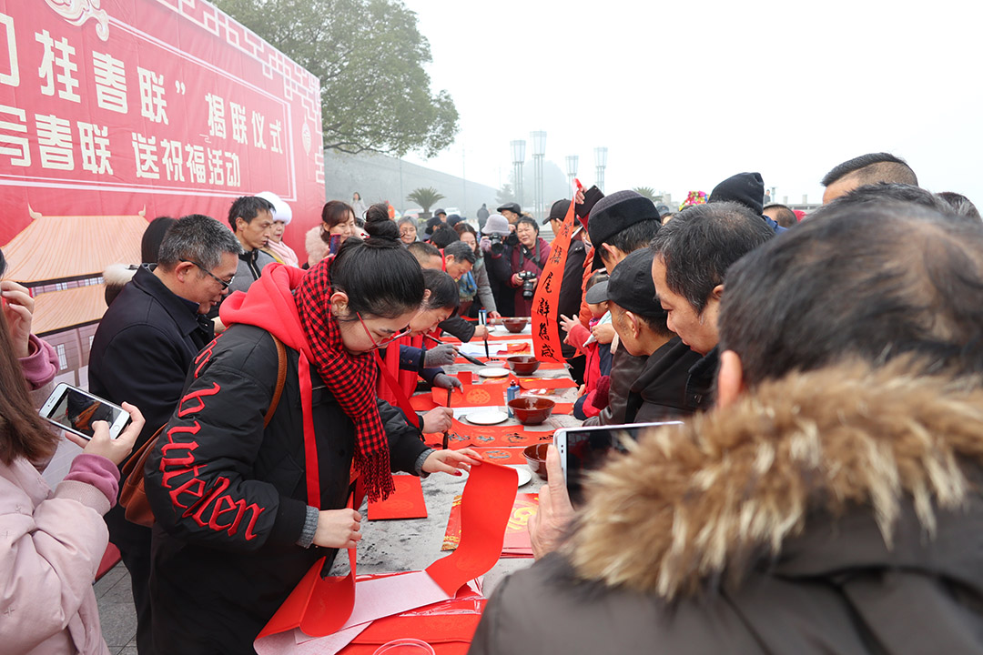 1月19日,由襄陽市文化和旅游局主辦、雙雄醉健康酒業(yè)贊助的“襄陽市城墻城門掛春聯(lián)”揭聯(lián)儀式暨“迎新春 寫春聯(lián) 送祝福”活動在臨漢門前舉行。