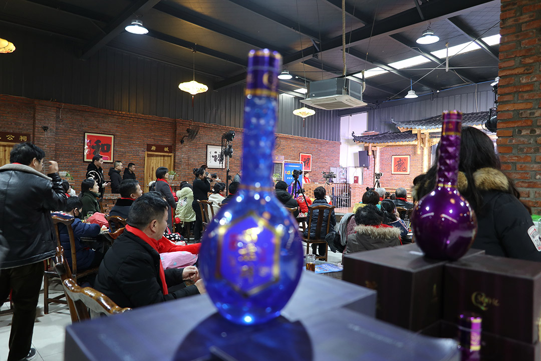 產(chǎn)品是藝術(shù)的最佳表現(xiàn)形式,因?yàn)殡p雄醉健康酒助興,臺(tái)上臺(tái)下更加熱情互動(dòng),洋溢著濃濃的團(tuán)年味!
