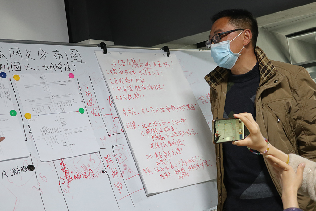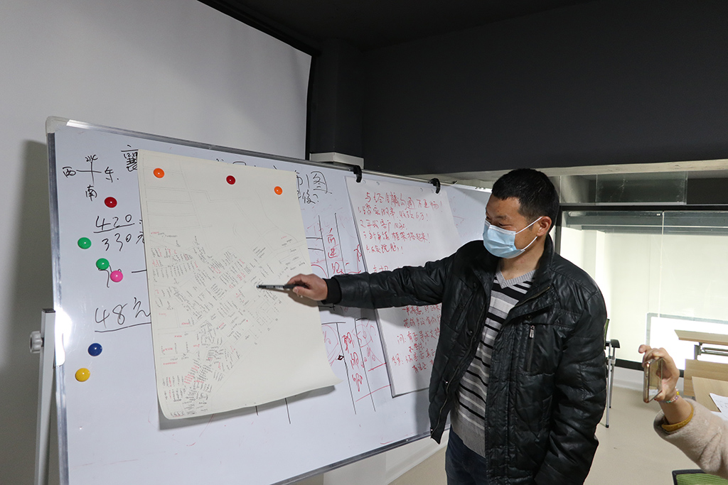 3月23日,銷售總監(jiān)胡華俊就區(qū)域網(wǎng)格化管理之“兩圖一表”如何操作進行了詳細培訓(xùn),安排新員工進行網(wǎng)格化管理實戰(zhàn)演練。幾天來,雖然天氣陰晴不定,雨雪不斷,依然擋不住團隊的熱情,大家通過掃街的方式,在公司的指導(dǎo)下,按時完成“兩圖一表”的繪制和拜訪路線的劃分。分享展示會上,大家根據(jù)實際拜訪的情況,講述各區(qū)域繪制地圖的過程及區(qū)塊化管理的辦法。部分參加網(wǎng)絡(luò)會議的新員工通過網(wǎng)絡(luò)展示成果。