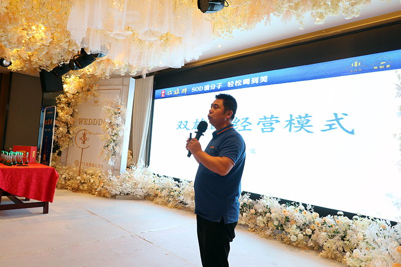 雙雄醉健康酒業(yè)營銷總監(jiān)胡華俊講解創(chuàng)新營銷新模式,胡總指出,雙雄醉創(chuàng)新推出“1+N”聯(lián)盟體新模式,整合市場各環(huán)節(jié)的優(yōu)質(zhì)資源,激發(fā)各層面核心經(jīng)營團隊的參與熱情,發(fā)展更多的事業(yè)合伙人形成聯(lián)盟體,同心合力,全力做好市場基礎(chǔ)氛圍,推動產(chǎn)品銷售,力爭1-3年,將新開發(fā)市場發(fā)展為成熟市場,樹立雙雄醉健康白酒根據(jù)地標桿市場和省外樣板市場,實現(xiàn)共建、共生、共享!