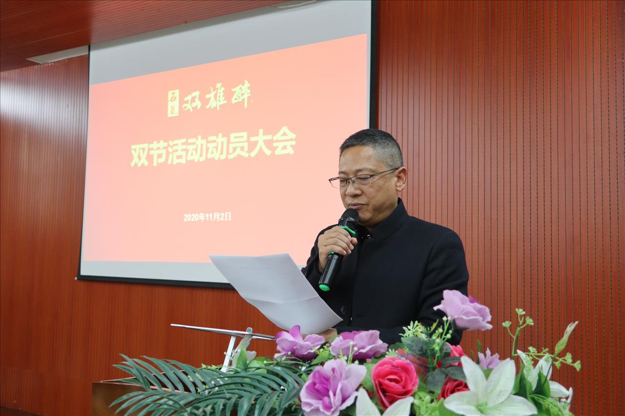 雙雄醉健康酒業(yè)總經(jīng)理鄭書軍作雙節(jié)活動(dòng)動(dòng)員報(bào)告,鄭總指出,在上半年經(jīng)營(yíng)工作中,雙雄醉銷售規(guī)模穩(wěn)步提升,品牌影響力逐漸顯現(xiàn),升學(xué)宴活動(dòng)取得圓滿成功,團(tuán)隊(duì)打造初見(jiàn)成效。經(jīng)營(yíng)年度下半年,有機(jī)遇也有挑戰(zhàn),希望每個(gè)“雙雄醉”人能夠提高主體意識(shí)、責(zé)任意識(shí)、危機(jī)意識(shí),咬定目標(biāo)不放松。