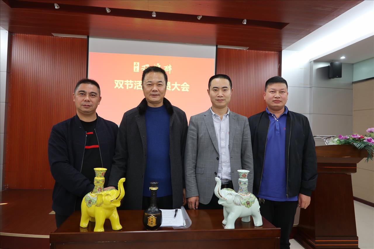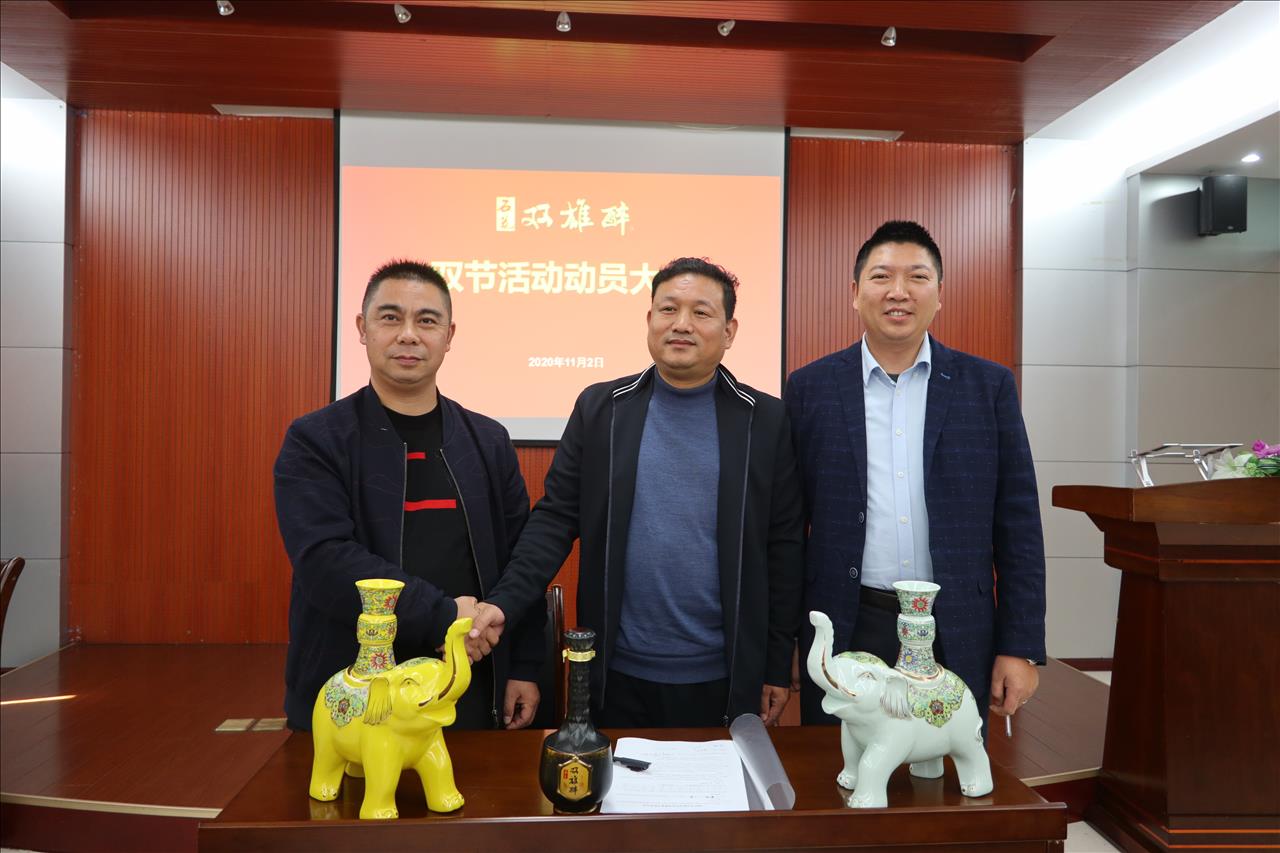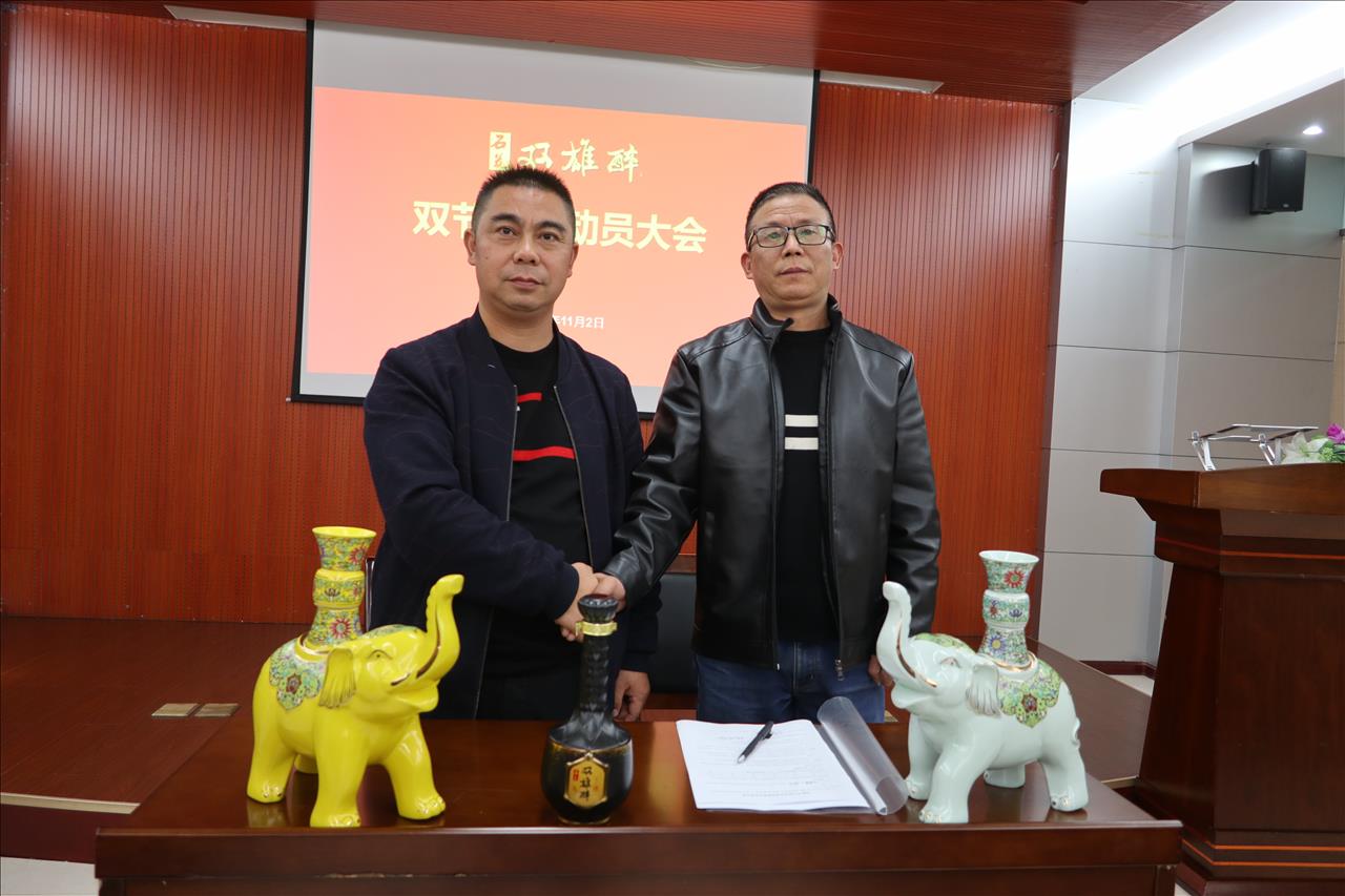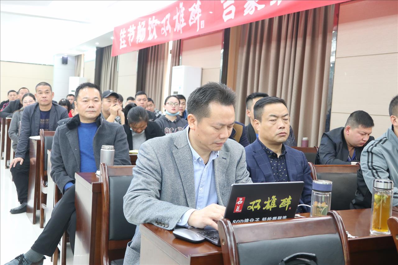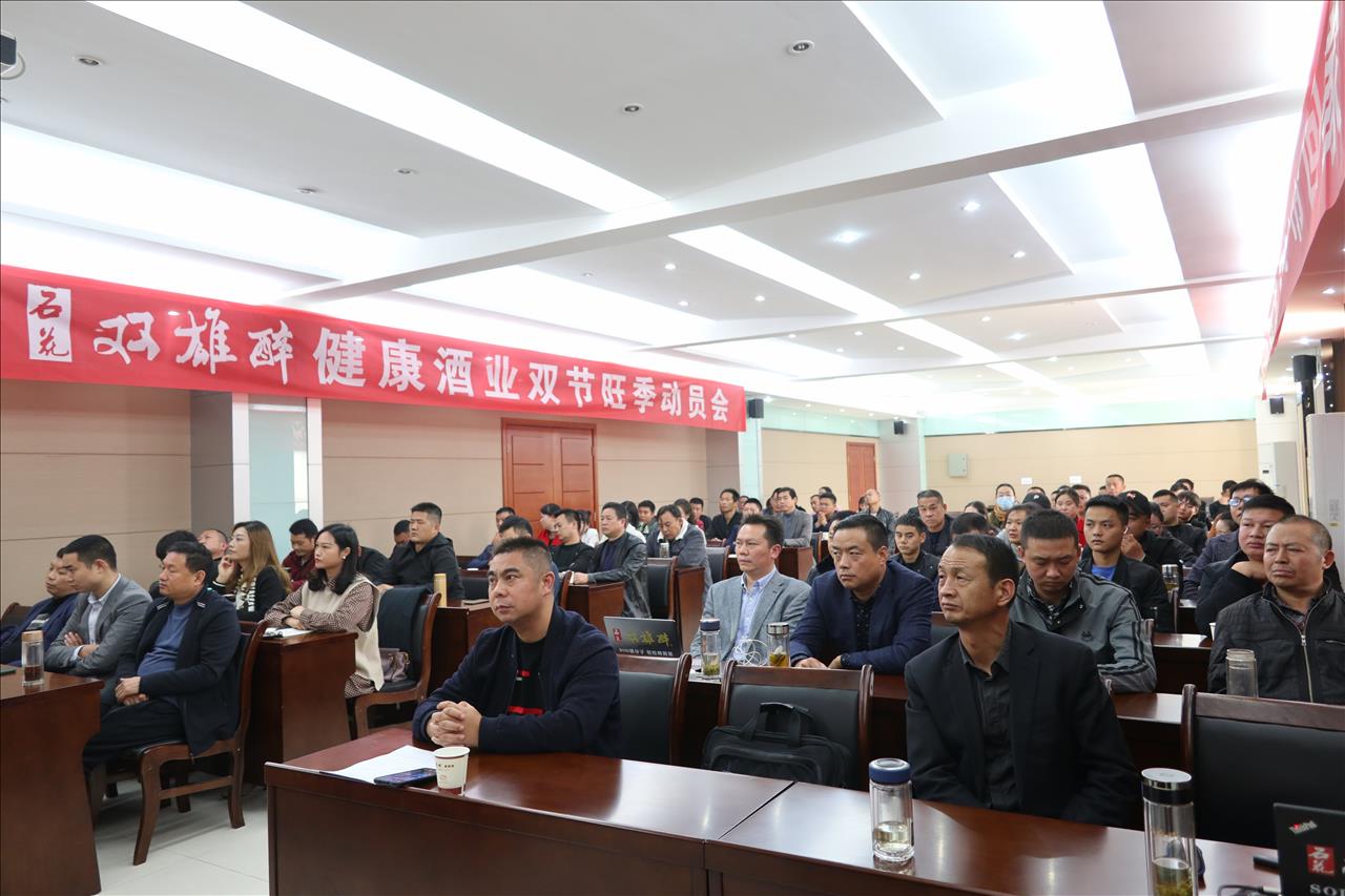 會(huì)議由雙雄醉健康酒業(yè)營(yíng)銷總監(jiān)胡華俊主持,胡總宣講了雙節(jié)活動(dòng)方案,雙雄醉雙節(jié)宣傳語(yǔ)“佳節(jié)暢飲雙雄醉,吉象如意帶回家”閃亮登場(chǎng)。大象自古就是靈獸,象諧音祥、相,寓意著吉祥如意、出將入相,靈象現(xiàn)世則天下太平。2020年是不平凡的一年,因?yàn)橐咔?,每一次親朋相聚,都倍感珍惜,2021年,團(tuán)聚在一起,一起喝雙雄醉健康酒,過(guò)吉祥如意年,為回饋消費(fèi)者,雙雄醉健康酒業(yè)特準(zhǔn)備了數(shù)萬(wàn)壇“吉象如意”酒和“萬(wàn)象更新”酒投放市場(chǎng),讓數(shù)萬(wàn)家庭都能夠享受健康好酒、享受吉祥安康!太平有象!