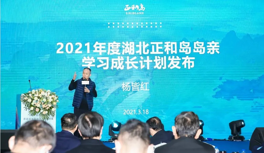 正和島湖北企業(yè)家學習成長中心執(zhí)行主席楊皆紅發(fā)表講話《2021年度湖北正和島島親學習成長計劃發(fā)布》