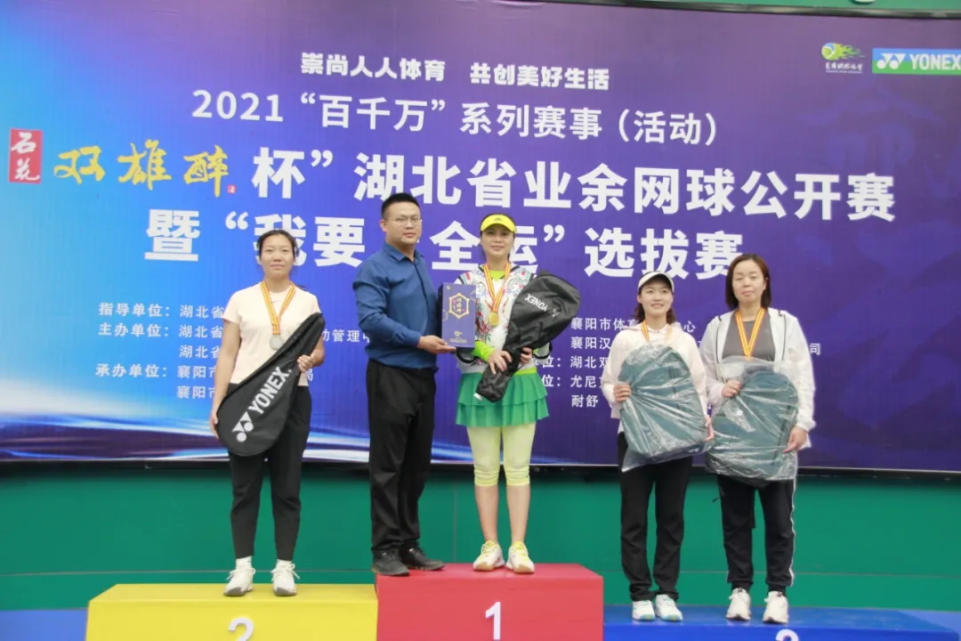 5月23日,2021“石花雙雄醉杯”湖北省業(yè)余網(wǎng)球公開賽暨“我要上全運(yùn)”選拔賽在襄陽全民健身中心圓滿落幕。200多名網(wǎng)球運(yùn)動(dòng)員經(jīng)過兩天的激烈角逐,最終取得了優(yōu)異的成績,為廣大球迷朋友們呈現(xiàn)一場精彩的網(wǎng)球盛宴。湖北省網(wǎng)球協(xié)會(huì)會(huì)長盛國玉、湖北省體育局網(wǎng)球運(yùn)動(dòng)管理中心主任盧鳴笙、襄陽市文化和旅游局黨組書記、局長鄭玉清、襄陽市網(wǎng)球協(xié)會(huì)主席曾玉平、襄陽市文化和旅游局副局長沈德松等領(lǐng)導(dǎo)出席頒獎(jiǎng)儀式。