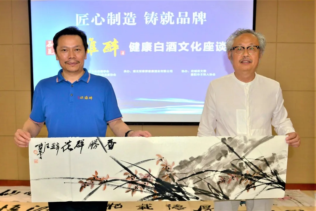 襄陽市經(jīng)濟文化傳媒學(xué)會榮譽主席石和平主持本次座談會,石主席表示,白酒產(chǎn)業(yè)的發(fā)展離不開文化的支撐,由襄陽市經(jīng)濟文化傳媒學(xué)會、襄陽市企業(yè)聯(lián)合會開展藝術(shù)家走基層活動,得到谷城縣文聯(lián)、襄陽市主持人協(xié)會的鼎力協(xié)助。這次走進石花雙雄醉,通過白酒文化與書畫文化相結(jié)合,弘揚優(yōu)秀傳統(tǒng)文化,為企業(yè)與文化藝術(shù)之間進一步交流搭建互動平臺,推進企業(yè)文化建設(shè),提升企業(yè)文化品位,促進企業(yè)全面發(fā)展。