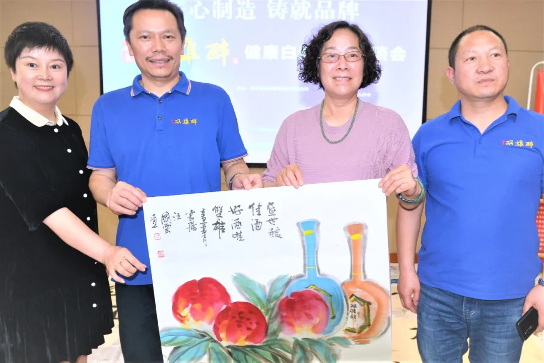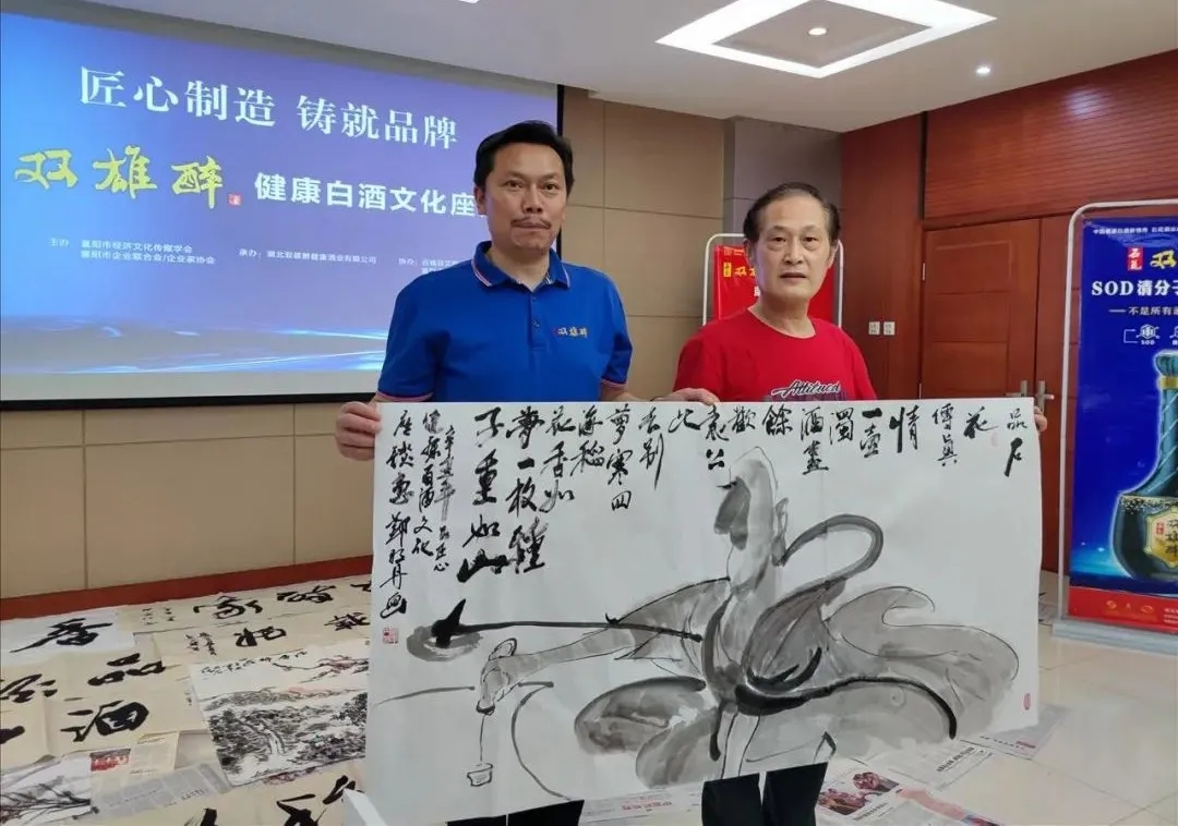 匠心鑄就品牌,藝術(shù)擦亮品牌,5月31日,匠心制造  鑄就品牌——“雙雄醉”健康白酒文化座談會在石酒產(chǎn)業(yè)園召開,20多位書畫名家為雙雄醉助力,品味雙雄醉健康酒,增精氣神、悟天人之道,揮灑傳世精品,為雙雄醉酒插上文化騰飛的翅膀。本次活動由襄陽市經(jīng)濟文化傳媒學(xué)會、襄陽市企業(yè)聯(lián)合會/企業(yè)家協(xié)會主辦,谷城縣文聯(lián)、襄陽市主持人協(xié)會協(xié)辦,原襄陽文聯(lián)主席、市政府參事卓道成,襄陽市僑聯(lián)原副主席、秘書長李斌、襄陽企聯(lián)常務(wù)副秘書長申文寶、趙玥,市經(jīng)濟文化傳媒學(xué)會榮譽主席石和平,副主席劉太云、施發(fā)軍、肖光義,谷城縣文聯(lián)主席王金文,與湖北省書協(xié)副主席、襄陽市書法家協(xié)會主席劉水露,書法家協(xié)會副主席金光林,襄陽市美術(shù)家協(xié)會副主席汪嘯云、汪國云、周解民、黃亞東,著名畫家劉庸之、著名書法家田文化,谷城縣美協(xié)劉勇慶、鄧明丹,谷城縣書協(xié)石玉軒、彭雪濱等二十多位書畫家在雙雄醉酒業(yè)總經(jīng)理鄭書軍的陪同下,參觀了中國生態(tài)白酒莊園和石酒品牌館。