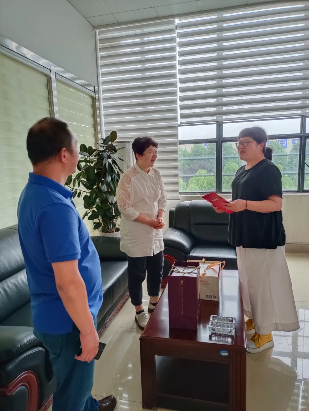 6月17日下午,襄陽(yáng)市企業(yè)聯(lián)合會(huì)數(shù)據(jù)部部長(zhǎng)劉輝、雙雄醉健康酒業(yè)大客服務(wù)部總監(jiān)李愛軍,帶著《襄陽(yáng)英雄 青春永駐》的生日賀卡和生日蛋糕,來(lái)到湖北時(shí)瑞達(dá)重型工程機(jī)械有限公司,為過生日的黨委書記胡艷送上生日祝福。