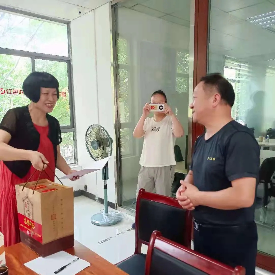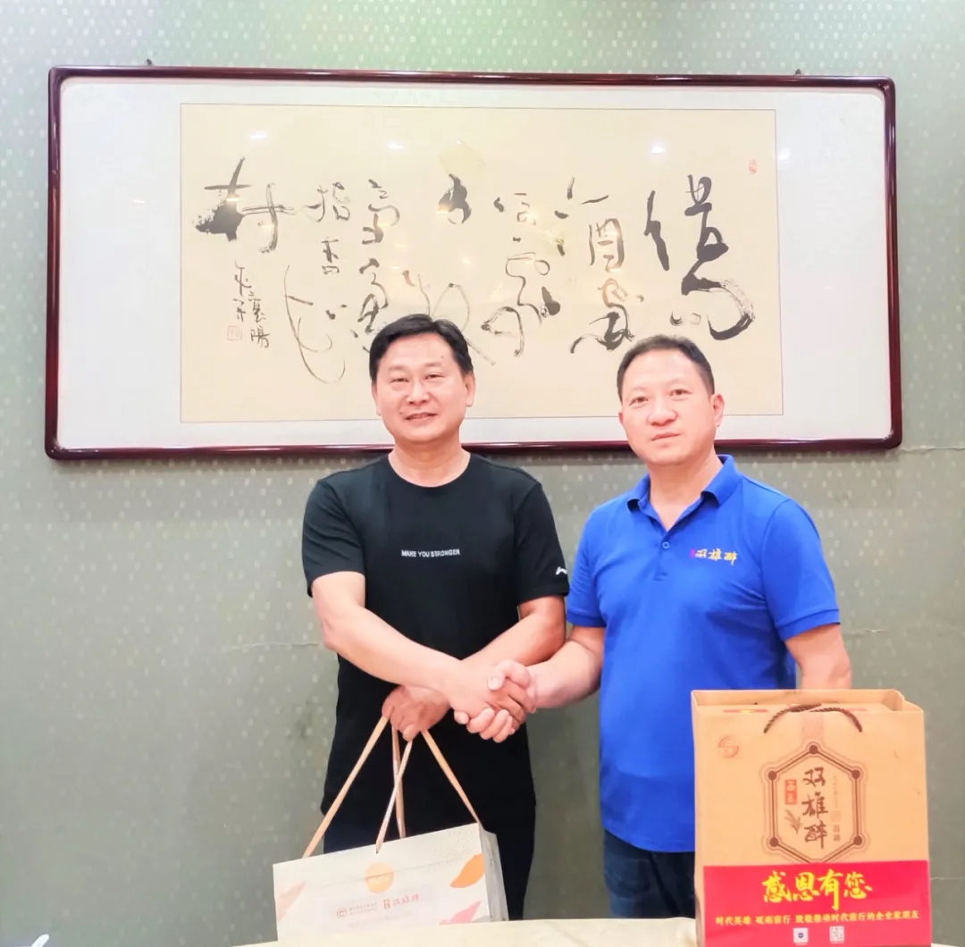 為營造尊重企業(yè)家、服務(wù)企業(yè)家、關(guān)愛企業(yè)家的濃厚氛圍,充分激發(fā)企業(yè)家以更大熱情干事創(chuàng)業(yè)。7月16日,湖北雙雄醉健康酒業(yè)大客服務(wù)部總監(jiān)李愛軍,帶著由市經(jīng)信局段細(xì)柱局長、市企聯(lián)吳少偉會(huì)長簽名的《襄陽英雄 青春永駐》的生日賀卡和生日蛋糕,以及雙雄醉頂級(jí)酒——清罇優(yōu)醬,為過生日的湖北匯智銘傳生物科技股份公司總經(jīng)理張富強(qiáng)送上生日祝福。