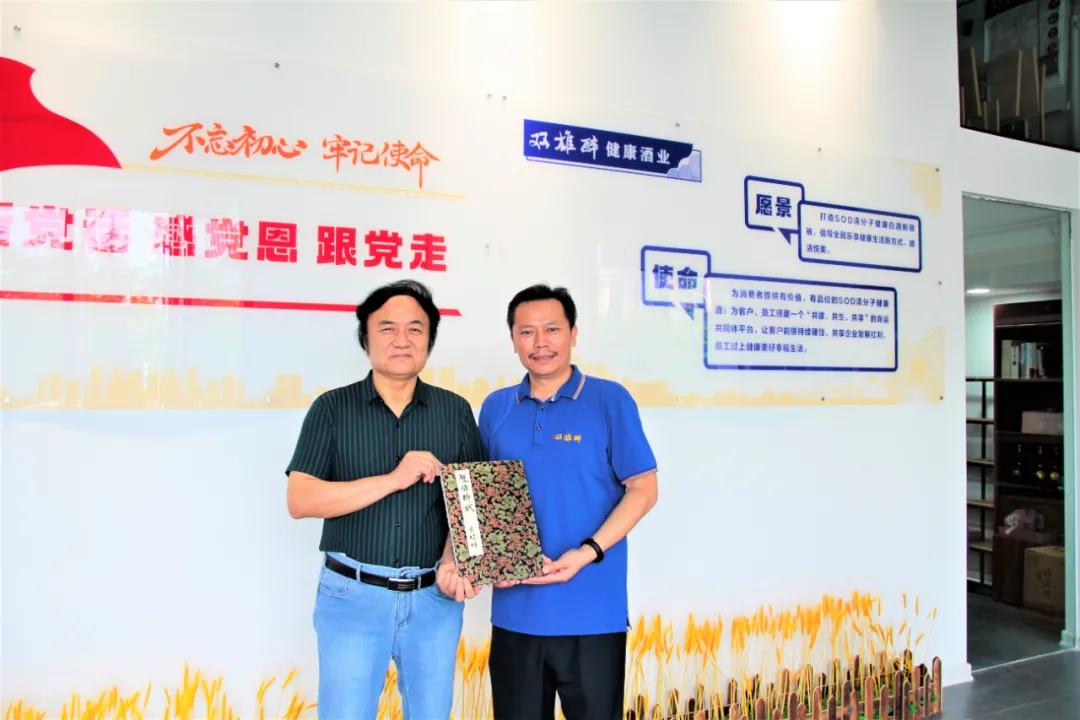7月28日,襄陽市經(jīng)濟文化傳媒學會榮譽主席石和平一行蒞臨雙雄醉健康酒業(yè)營銷總部參觀指導,石主席向雙雄醉贈送由著名書法家、鑒寶大師、著名中醫(yī)吳緒豐先生撰寫的《雙雄醉賦》墨寶,楚筆游龍,翰墨飛鴻,六米長卷字字傳情,詩神詩旨,躍然紙上,令現(xiàn)場嘉賓贊不絕口!以傳世之心打造傳世之作,感謝書畫大師們?yōu)殡p雄醉創(chuàng)作多幅精品書畫,這份禮物是雙雄醉酒業(yè)收到的最珍貴的禮物,我們將永遠珍藏。祝福大師們創(chuàng)作出更多的藝術(shù)精品,推動社會的快速進步!