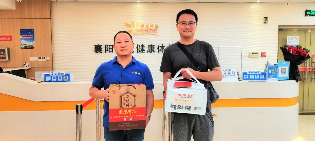 8月15日,襄陽市企業(yè)聯(lián)合會數(shù)據(jù)部部長劉輝、雙雄醉健康酒業(yè)大客戶服務部總監(jiān)李愛軍,前往襄陽陽光健康體檢中心有限公司,為王曦總經理送上生日祝福。