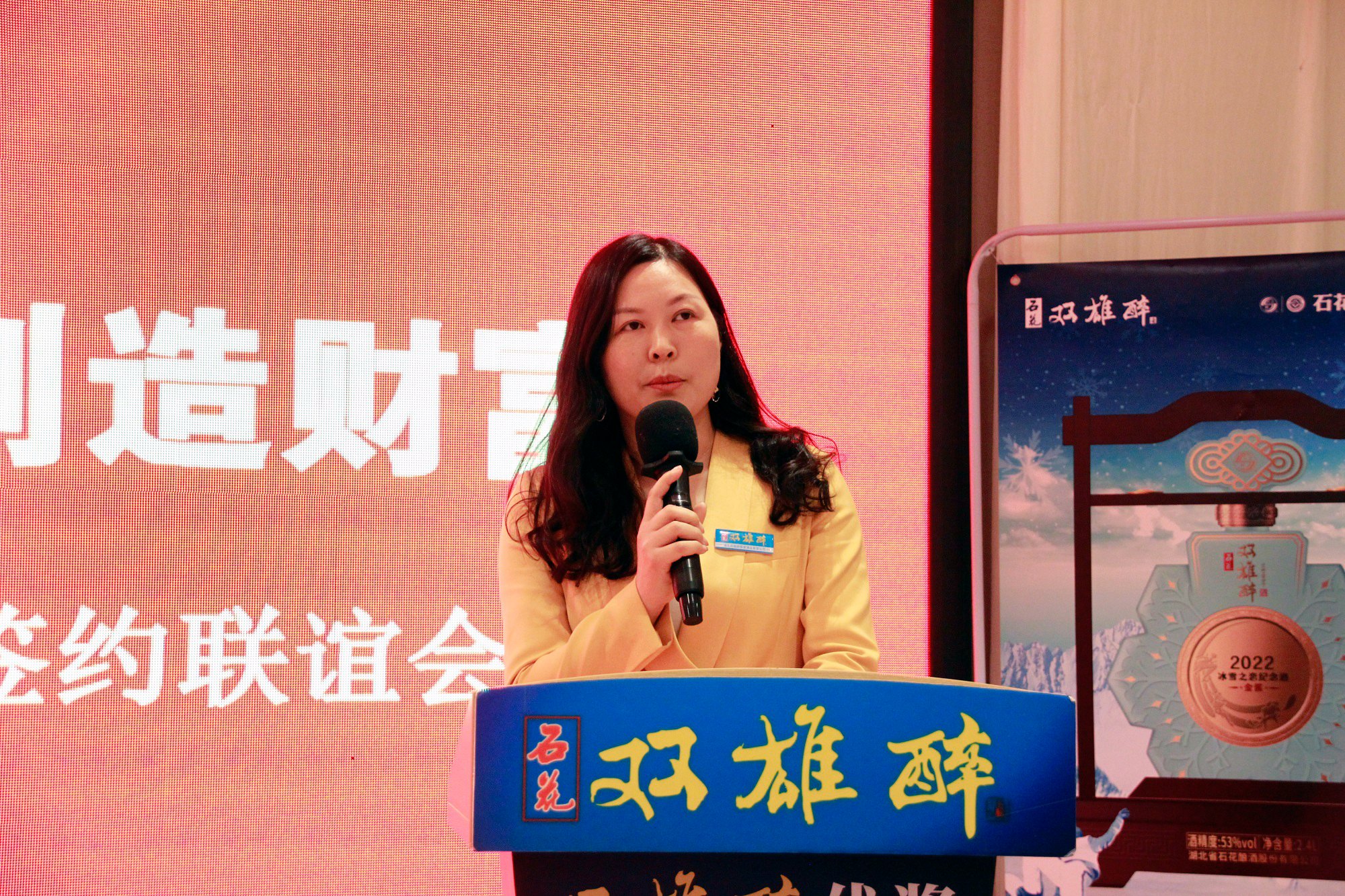 樊城區(qū)域代理合伙人曹莉女士表示,自己以前沒有做過白酒,為什么選擇做雙雄醉代理合伙人,就是相信石花酒業(yè)多年來的信譽(yù),相信鄭總的為人,傍上雙雄醉這顆大樹,就是選擇了財富,2022年,在全體聯(lián)盟體的努力下,必將創(chuàng)變躍升,開啟共生、共建、共享的新篇章!