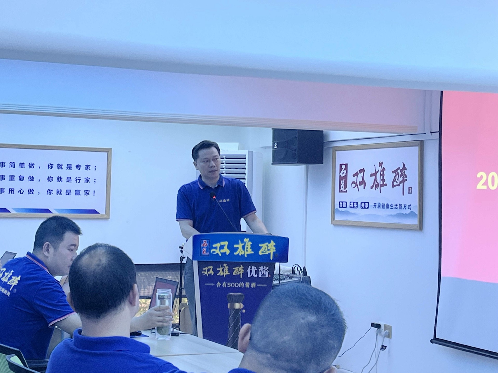 舉杯雙雄醉,英雄來(lái)相會(huì)。5月31日,石花雙雄醉60余位銷(xiāo)售精英齊聚雙雄醉健康酒業(yè)營(yíng)銷(xiāo)中心,參加6月?tīng)I(yíng)銷(xiāo)表彰總結(jié)會(huì)議,總經(jīng)理鄭書(shū)軍、副總經(jīng)理?xiàng)罱ù杭安糠执砗匣锶顺鱿敬螘?huì)議,會(huì)議由總經(jīng)理鄭書(shū)軍主持。