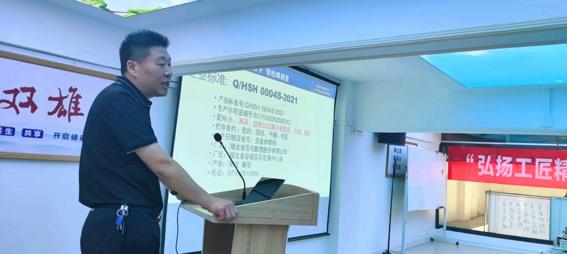 會(huì)上,石花酒業(yè)技術(shù)總監(jiān)、國(guó)家一級(jí)品酒師、中國(guó)酒業(yè)工匠之星、湖北省釀酒大師劉忠軍為全體員工講解《石酒的工匠精神與雙雄醉SOD醬酒研發(fā)過程及特點(diǎn)》,向大家講解石花老酒及雙雄醉健康白酒的釀造知識(shí),以傳統(tǒng)固態(tài)發(fā)酵的古法釀造工藝為基礎(chǔ),口傳心授代代相傳,嚴(yán)格把控酒體質(zhì)量,傳承匠心精神,創(chuàng)新健康理念。