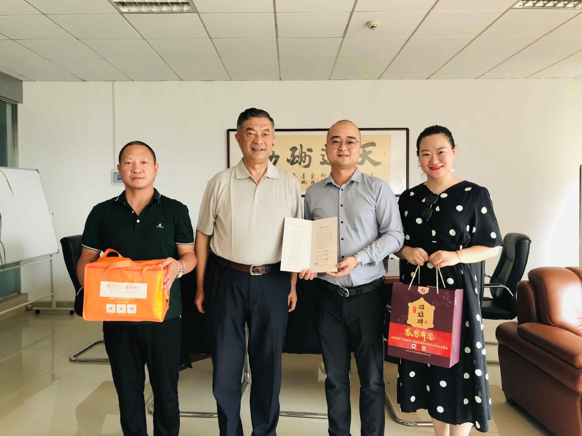 7月6日,恰逢湖北阿泰克生物科技股份有限公司董事長梁曉軍的生日,石花雙雄醉大客戶服務(wù)部總監(jiān)李愛軍、銷售總監(jiān)胡華俊一起為梁總送上生日祝福和由襄陽市領(lǐng)導(dǎo)付勁松副市長、市經(jīng)信局楊富杰局長和市企聯(lián)吳少偉會長簽名的《襄陽英雄 青春永駐》的賀卡、生日蛋糕以及雙雄醉富含SOD的健康白酒,并向趙總致以誠摯的生日祝福。