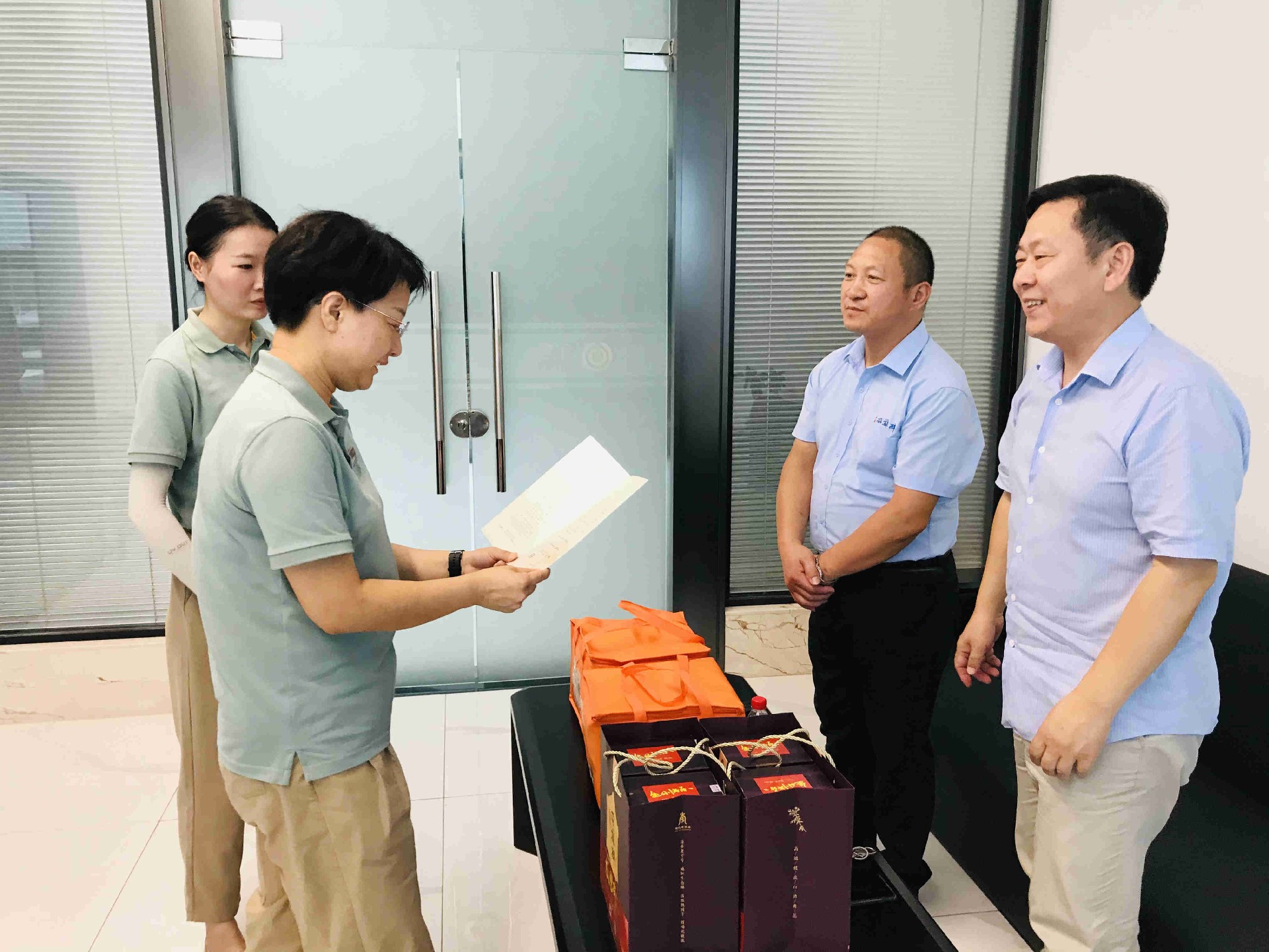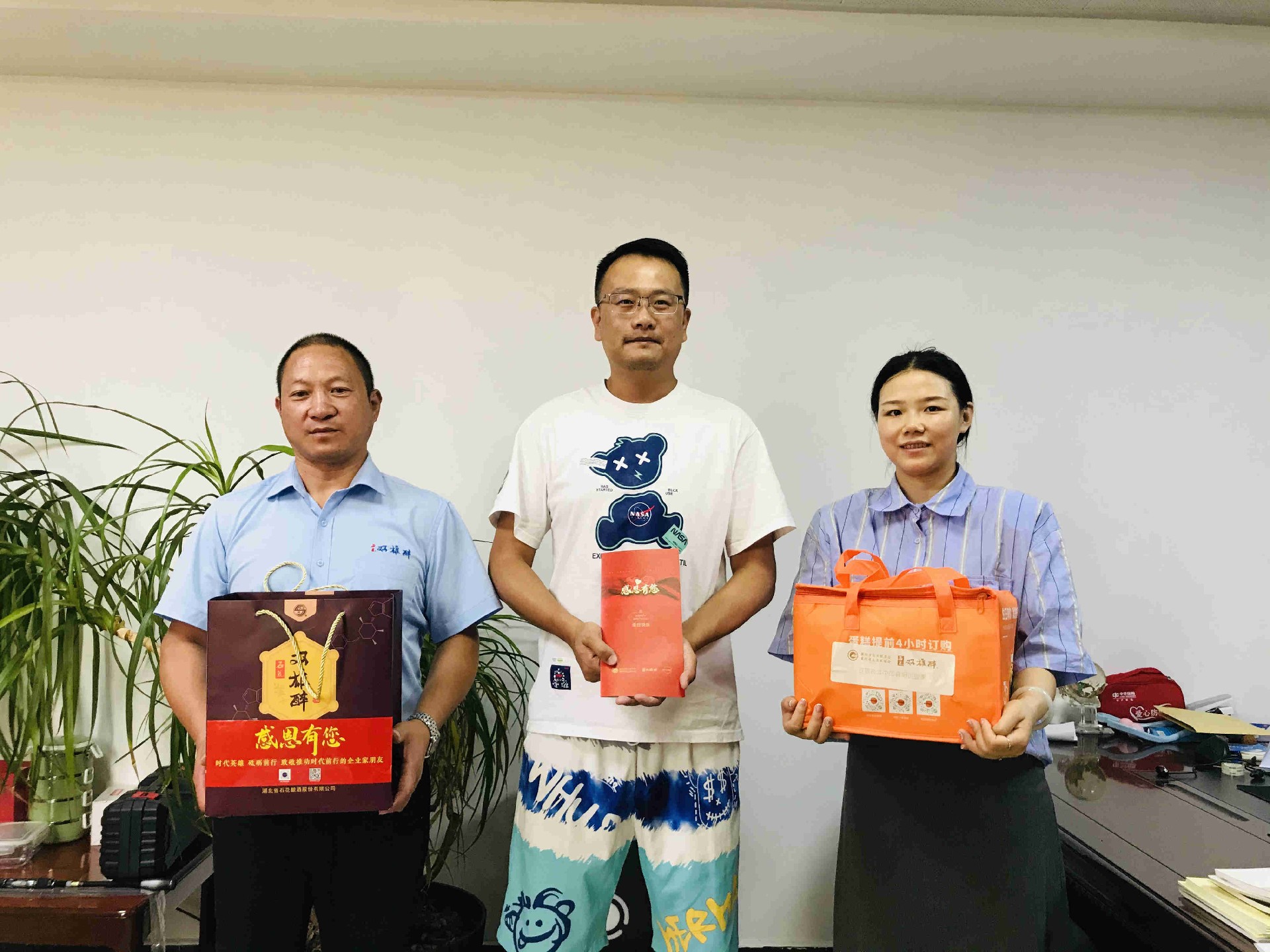 8月15日,正逢湖北回天新材料股份有限公司湖北基地總經(jīng)理張亞與集團副總經(jīng)理翰林兩位企業(yè)家的生日,襄陽企聯(lián)常務副秘書長申文寶、雙雄醉健康酒業(yè)大客戶服務部總監(jiān)李愛軍,帶著由襄陽市政府領導段細柱、襄陽企聯(lián)吳少偉會長簽名的《襄陽英雄 青春永駐》的生日賀卡、生日蛋糕和雙雄醉健康白酒,來到湖北回天新材料股份有限公司湖北基地 ,為張總與翰總送上生日祝福,感謝兩位優(yōu)秀的企業(yè)家為推動襄陽經(jīng)濟發(fā)展做出的貢獻!