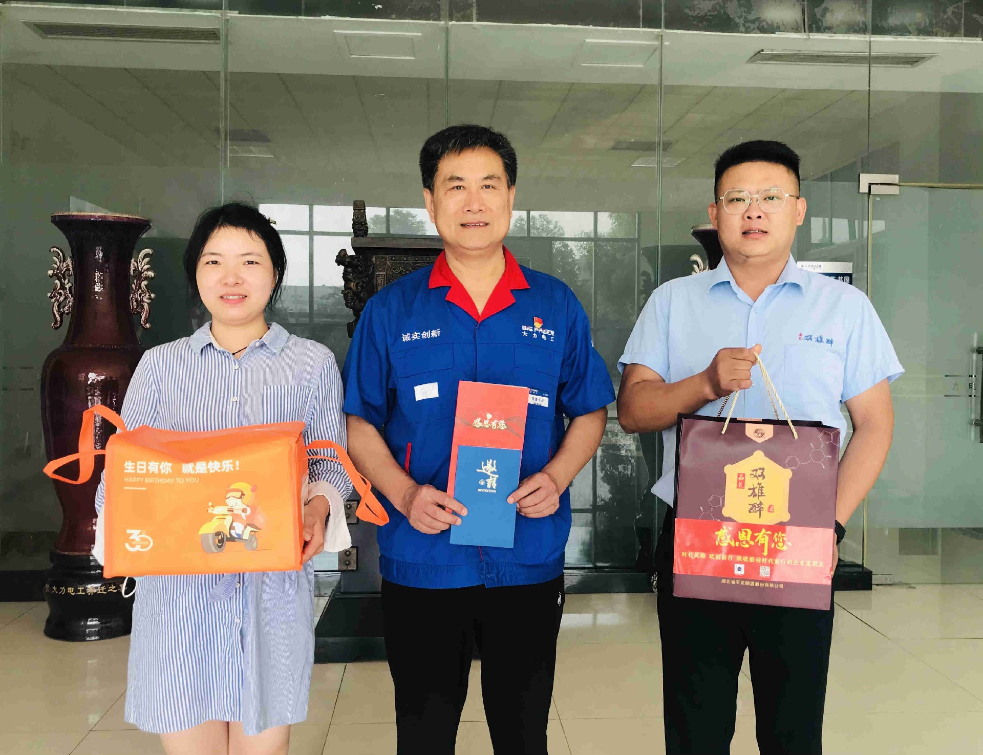 9月16日,正逢大力電工襄陽股份有限公司董事長高文廣的生日,襄陽企聯(lián)工作人員、雙雄醉樊城區(qū)域經理王謙一并為高總(由董事會秘書、黨委書記余志金代收)送上生日祝福,并獻上由襄陽市領導付勁松副市長、市經信局楊富杰局長和市企聯(lián)吳少偉會長簽名的《襄陽英雄 青春永駐》的賀卡、生日蛋糕以及雙雄醉富含SOD的白酒,并向高文廣董事長致以誠摯的生日祝福。