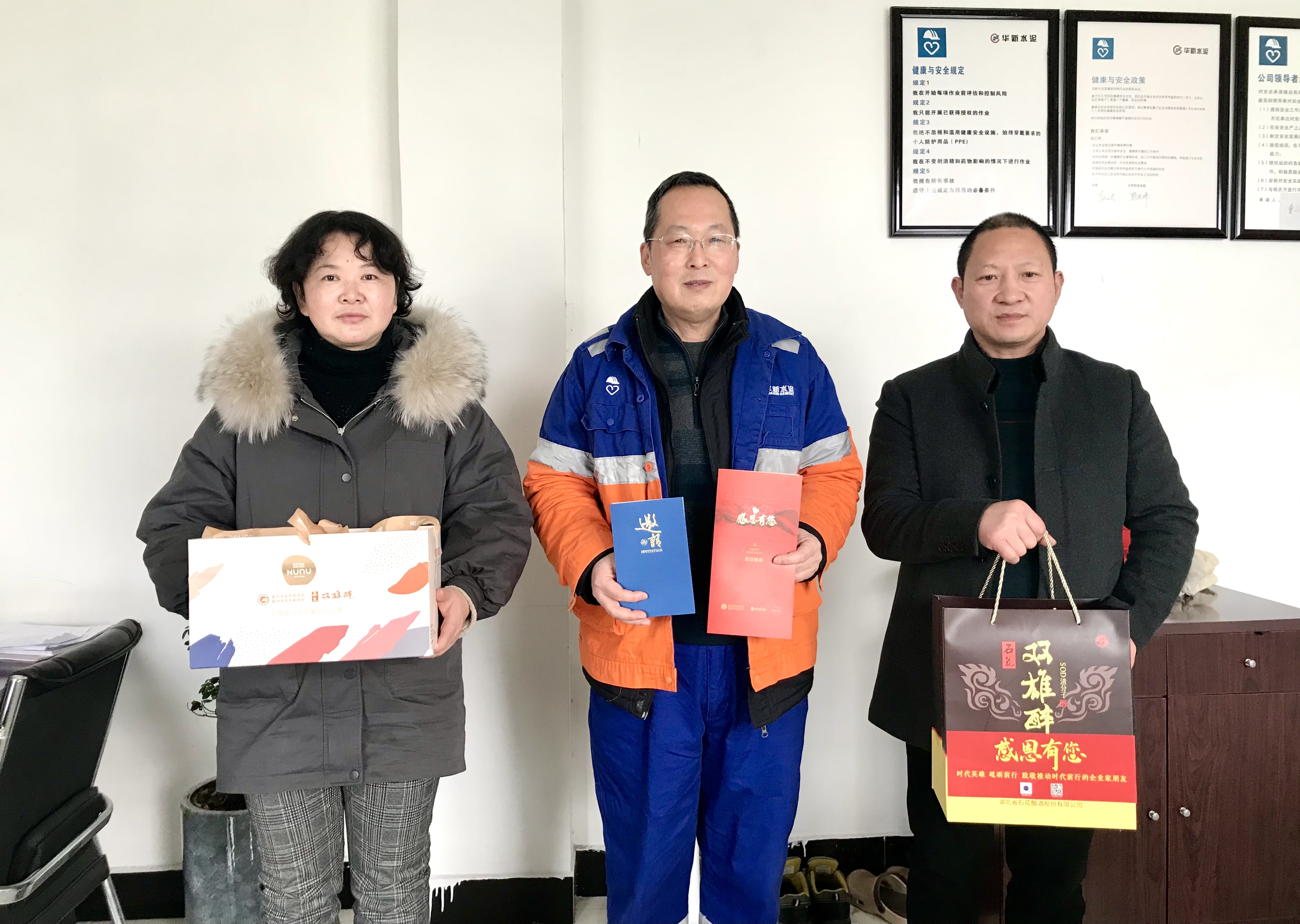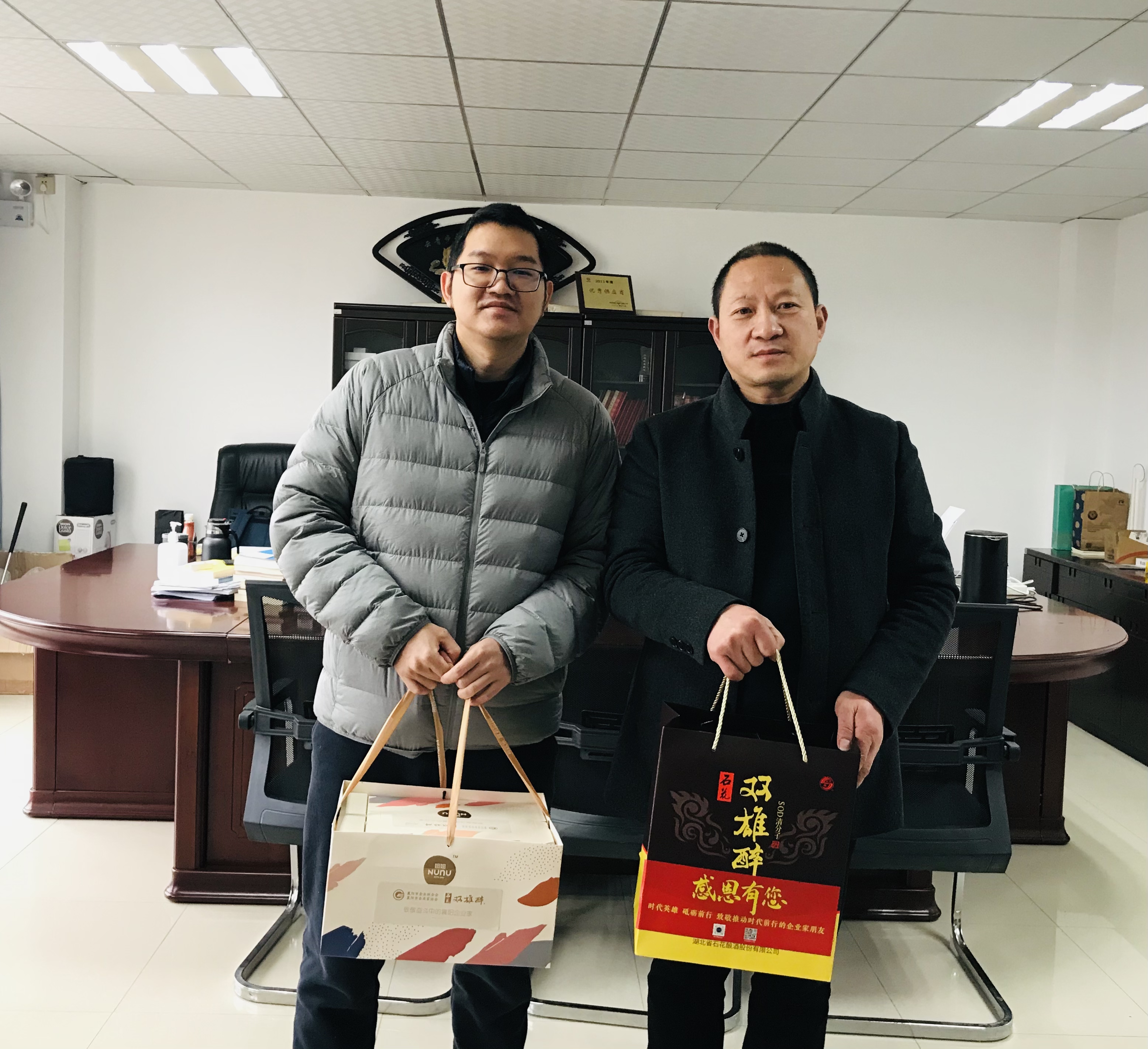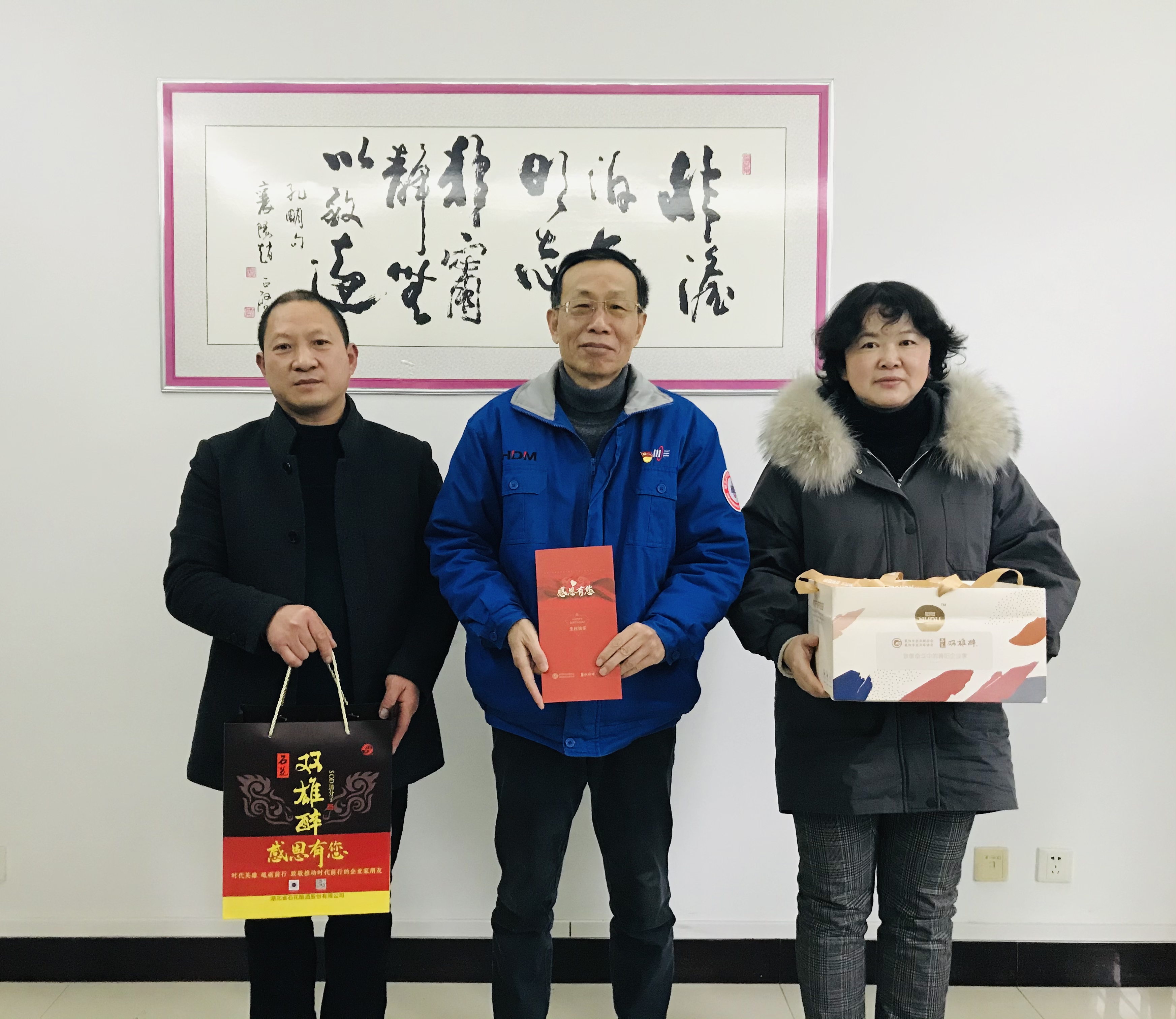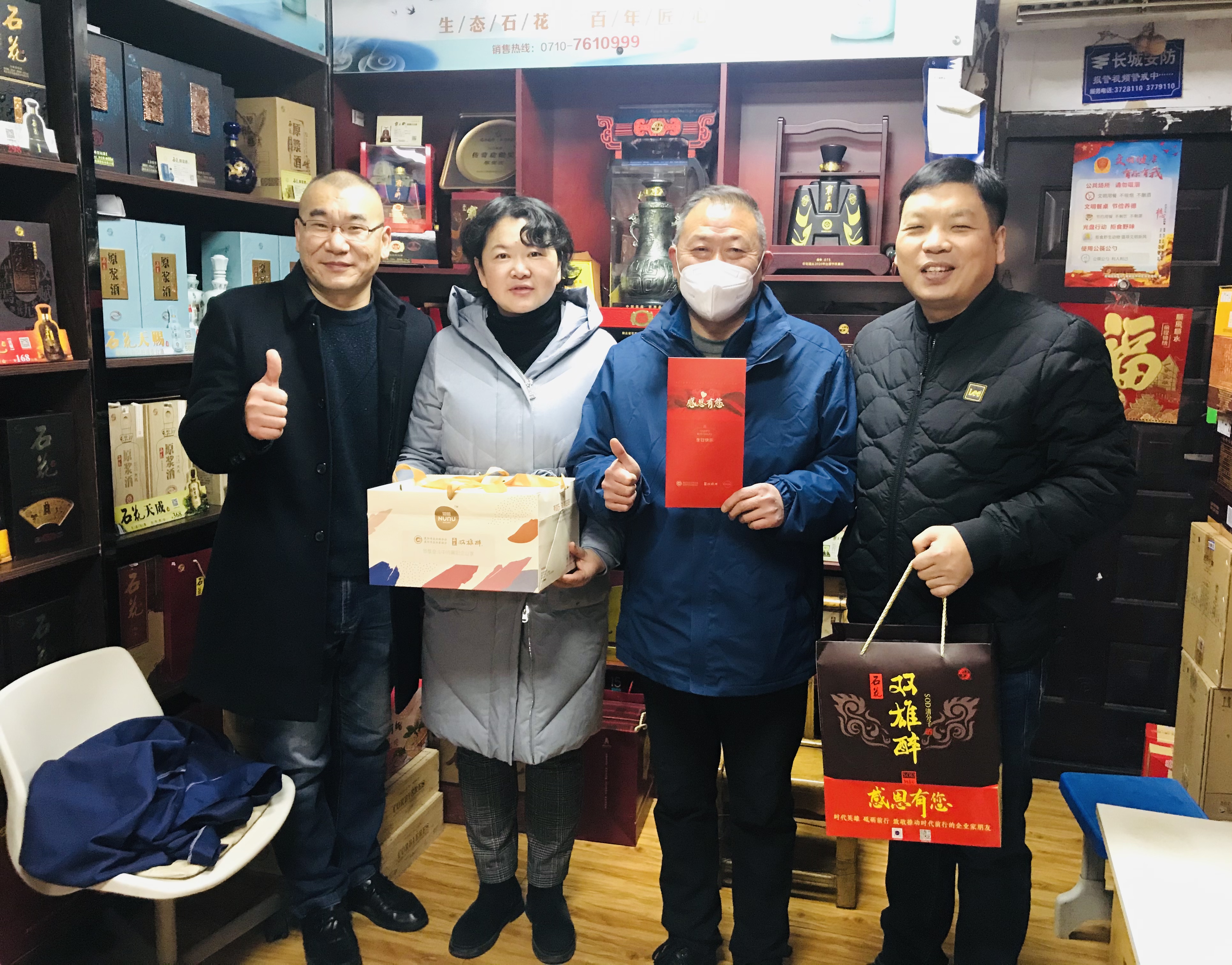 本周,襄陽企聯(lián)常務(wù)副秘書長申文寶和雙雄醉健康酒業(yè)總經(jīng)理鄭書軍、大客戶總監(jiān)李愛軍等,帶著由襄陽市領(lǐng)導(dǎo)付勁松副市長、市經(jīng)信局楊富杰局長和市企聯(lián)吳少偉會長簽名的《襄陽英雄 青春永駐》的賀卡、生日蛋糕以及雙雄醉SOD365億健康白酒。分別為湖北三沃力源航天科技有限公司董事長喬應(yīng)克、湖北三沃力源航天科技有限公司總經(jīng)理劉智昊、車橋副食批發(fā)總經(jīng)理 李玉波、襄陽東津獅子頭醬品廠總經(jīng)理尚峰、新興重工湖北三六一一機(jī)械有限公司黨委書記/董事長邵京城、襄陽市總工會(專家會員)副主席周萍、湖北漢丹機(jī)電有限公司黨委書記朱勇斌、華新水泥襄陽襄城有限公司執(zhí)行總經(jīng)理曹小鋒、湖北中航精機(jī)科技有限公司黨委書記/執(zhí)行董事高健、湖北中油優(yōu)藝環(huán)??萍技瘓F(tuán)有限公司董事長王春山、襄陽群龍汽車部件股份有限公司總經(jīng)理岳國生、湖北正佳拍賣有限公司總經(jīng)理趙芳等過生日的企業(yè)家朋友送去暖心生日祝福,感謝企業(yè)家朋友們?yōu)橄尻柦?jīng)濟(jì)發(fā)展作出的卓越貢獻(xiàn)!