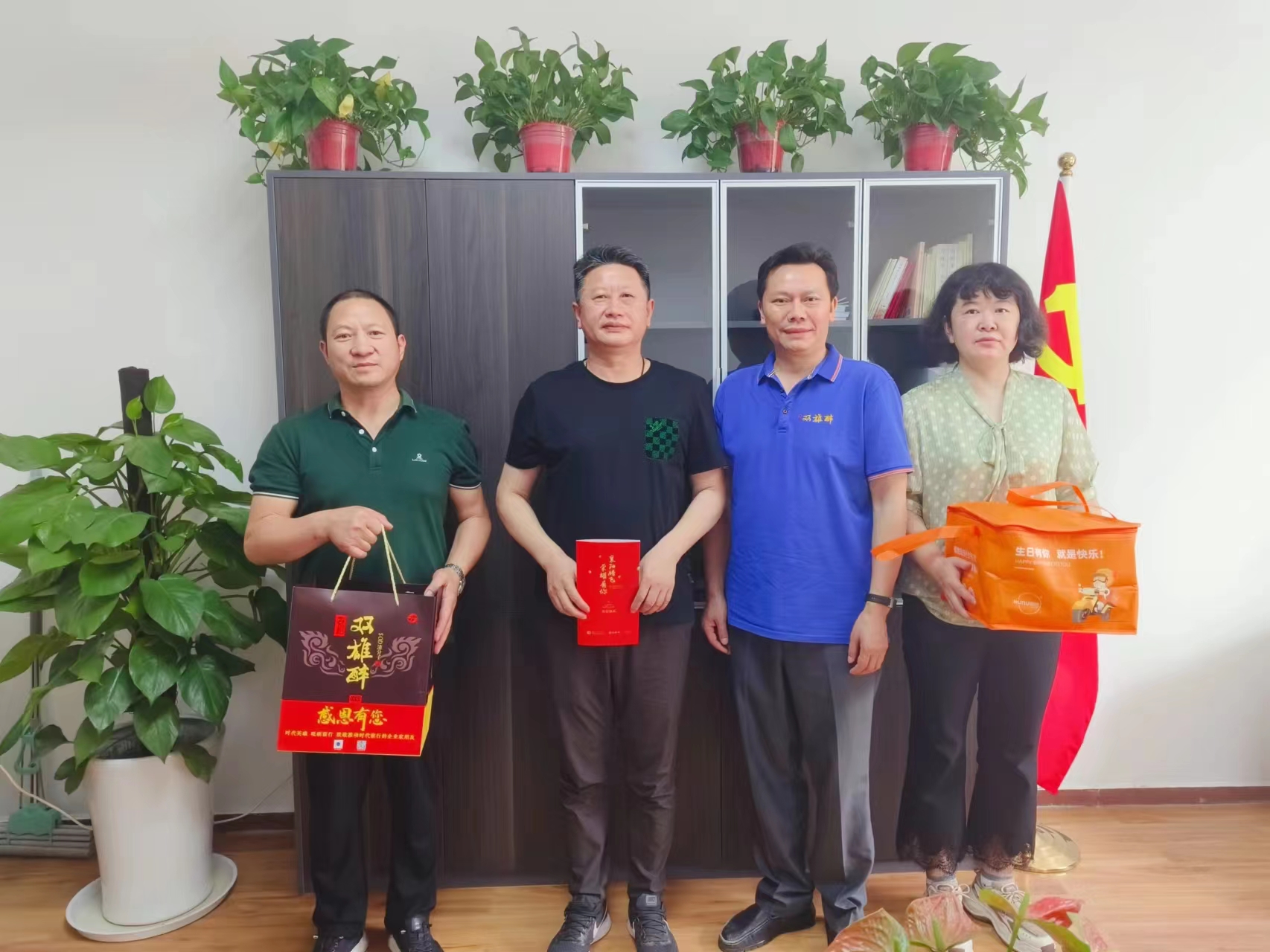 6月17日,襄陽(yáng)企聯(lián)攜手石花雙雄醉向綠盾(襄陽(yáng))信息管理有限公司總經(jīng)理張華禮送生日祝福!
