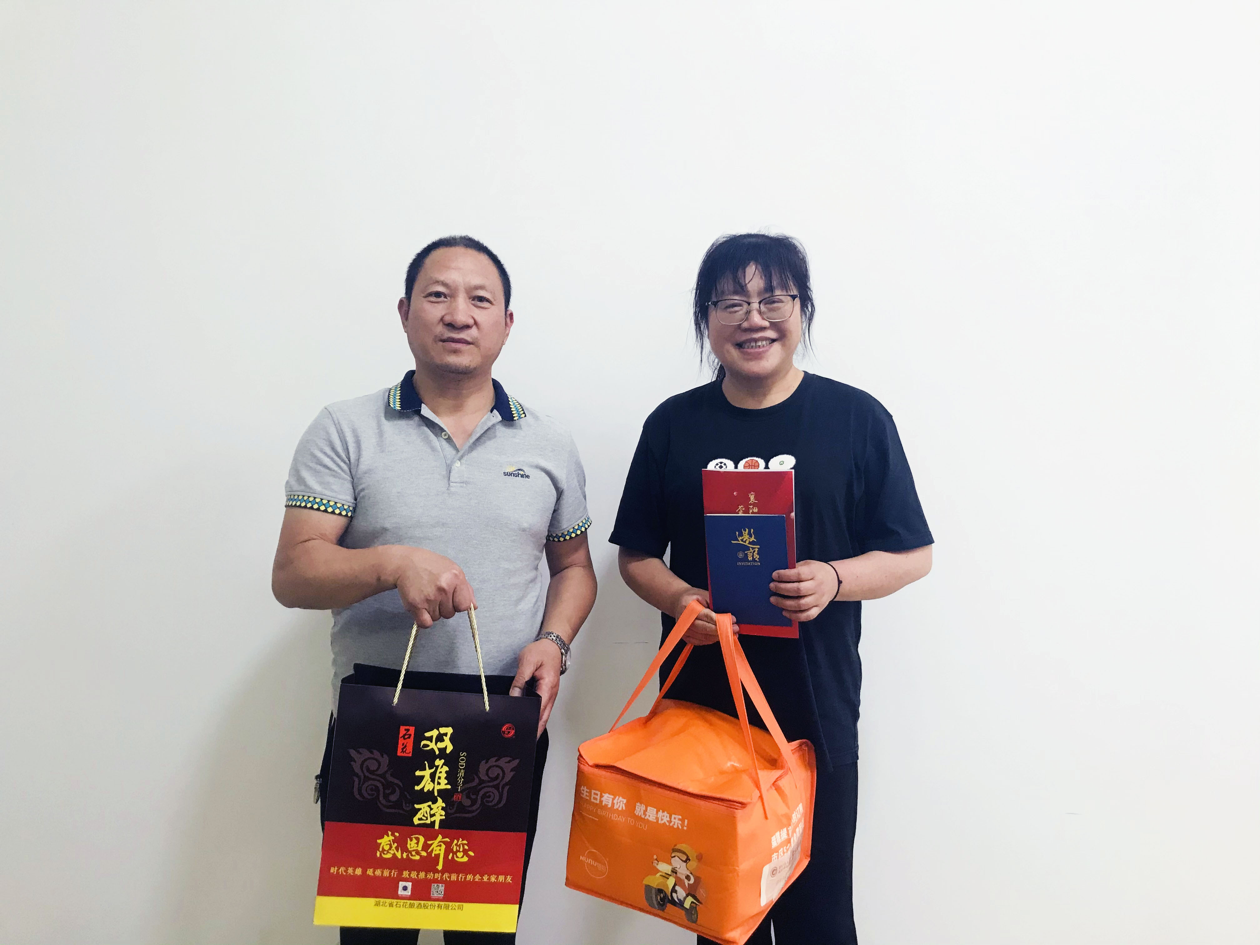 本周,石花酒業(yè)副總經(jīng)理、雙雄醉健康酒業(yè)總經(jīng)理鄭書(shū)軍、雙雄醉大客戶總監(jiān)李愛(ài)軍和襄陽(yáng)企聯(lián)工作人員一起,帶著由襄陽(yáng)市領(lǐng)導(dǎo)徐冰副市長(zhǎng)、市經(jīng)信局楊富杰局長(zhǎng)和市企聯(lián)吳少偉會(huì)長(zhǎng)簽名的《襄陽(yáng)英雄 青春永駐》的賀卡、生日蛋糕以及雙雄醉SOD365億白酒。分別為大力電工襄陽(yáng)股份有限公司副總裁環(huán)??偨?jīng)理胡其寅、漢江城建集團(tuán)有限公司總經(jīng)理助理龔志軍、博拉經(jīng)緯纖維有限公司總經(jīng)理朱永軍、湖北時(shí)瑞達(dá)重型工程機(jī)械有限公司黨委書(shū)記胡艷、綠盾(襄陽(yáng))信息管理有限公司總經(jīng)理張華等過(guò)生日的企業(yè)家朋友送去暖心生日祝福,感謝企業(yè)家朋友們?yōu)橄尻?yáng)經(jīng)濟(jì)發(fā)展作出的卓越貢獻(xiàn)!