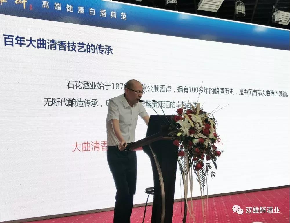 湖北省石花釀酒股份公司董事長、總經(jīng)理曹盧波代表舉辦方致歡迎詞,他指出,在上個(gè)世紀(jì)80年代未,湖北石花酒廠在中國著名白酒專家“南陶北高”陶家馳、高景炎的主持下,雙雄醉酒成功研發(fā)并上市;在中國白酒經(jīng)歷了黃金十年后,白酒市場進(jìn)入了深度調(diào)整期,消費(fèi)者對健康、時(shí)尚白酒的需求日漸顯現(xiàn),“健康白酒”這一白酒細(xì)分市場呈現(xiàn)規(guī)?;鲩L,為此,石花酒業(yè)從2016開始,在原雙雄醉酒釀造技術(shù)基礎(chǔ)上,增加了黑小麥等“藥食兩用”健康原料,秉承地缸發(fā)酵傳統(tǒng)工藝,2018年年底,全新的雙雄醉健康酒研發(fā)成功,兼具傳統(tǒng)白酒風(fēng)味與豐富健康成分雙重特點(diǎn),更好喝、更健康。