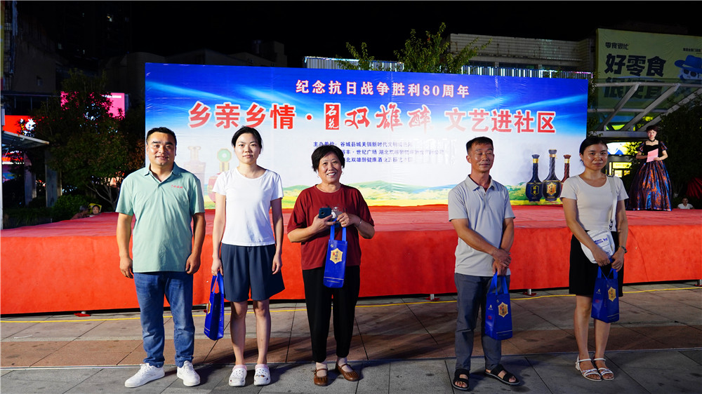 為拉近與鄉(xiāng)鄰的距離,活動特別設(shè)置兩輪互動環(huán)節(jié),雙雄醉準(zhǔn)備了精美禮品與品牌美酒,通過趣味問答、現(xiàn)場互動等形式與群眾熱情互動。從抗戰(zhàn)歷史常識到家鄉(xiāng)文化知識,觀眾踴躍參與、積極作答,廣場上歡聲笑語不斷,真正實現(xiàn)了“樂在其中、學(xué)在其中”。